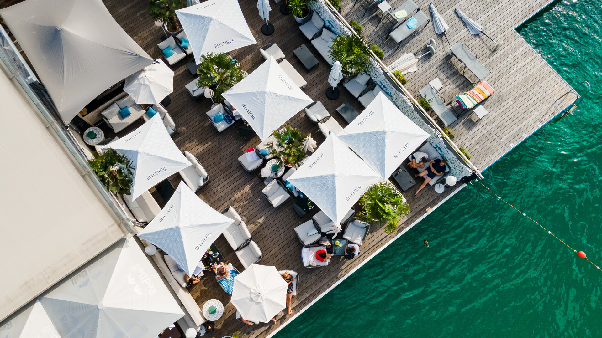 In den Sonnenuntergang schwimmen. Sich Zeit lassen. Mit netten Menschen plaudern. Die Heiterkeit genießen. Das Klirren der Gläser. Direkt am Wasser. Dolce Vita, Savoir-vivre, Hang Loose!